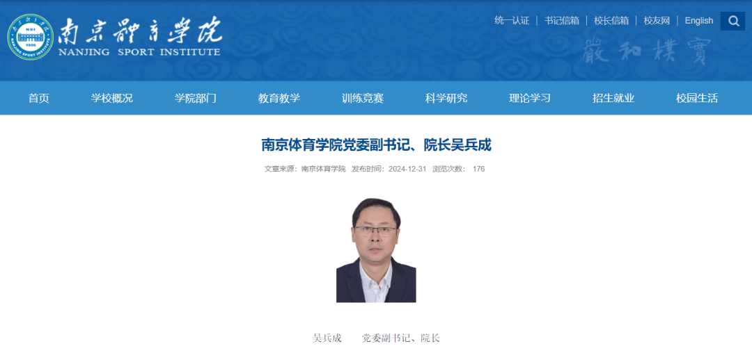 12月31日,记者在南京体育学院官网“学校领导”一栏发现,吴兵成已任南京体育学院党委副书记、院长。