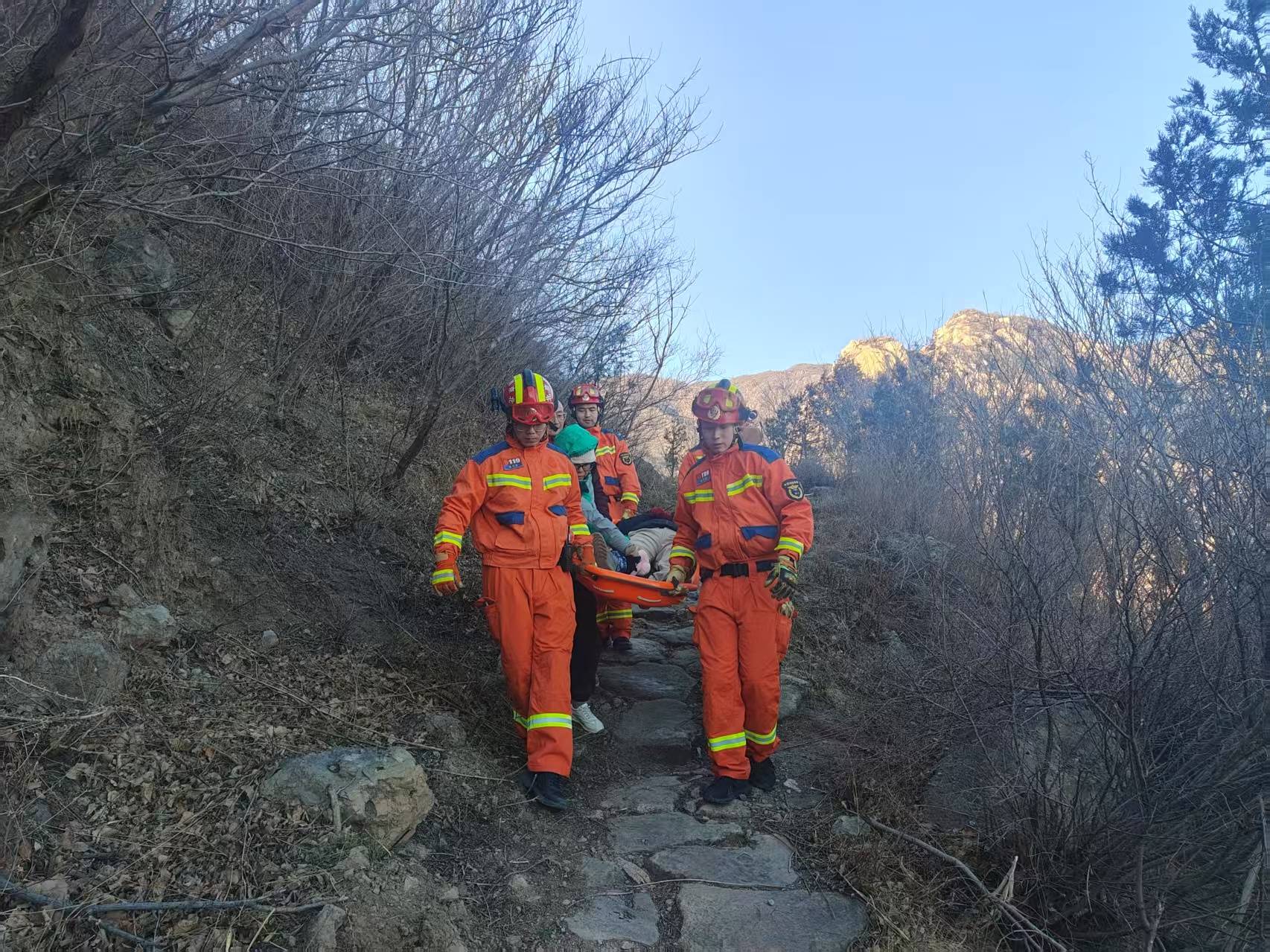一女游客在凤凰岭登山摔伤,北京海淀消防紧急救援