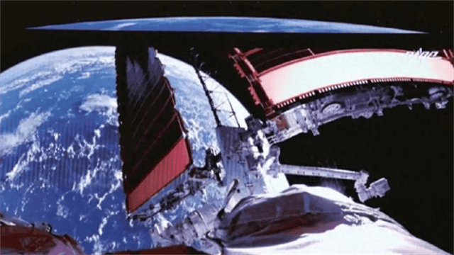 (航天员出舱为空间站加装空间碎片防护装置画面,这项任务从神舟十七号乘组就已经开始了)