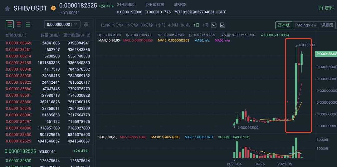 3、很多人对SHIB并不陌生,此代币项目是叫Shiba Inu,中文名叫柴犬币,是在狗狗币爆发之后开始出来蹭热度的,准确的来说是蹭马斯克的热度,在马斯克一直喊单狗狗币后,市场开始关注马斯克的一举一动,而在3月中旬的时候,马斯克发了一条推特,表示将为自己的家养一只柴犬,当时狗狗币没涨,shib却突然开始爆拉。