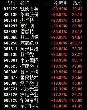 半导体板块今日走强,多股实现“30CM”或“20CM ”涨停。