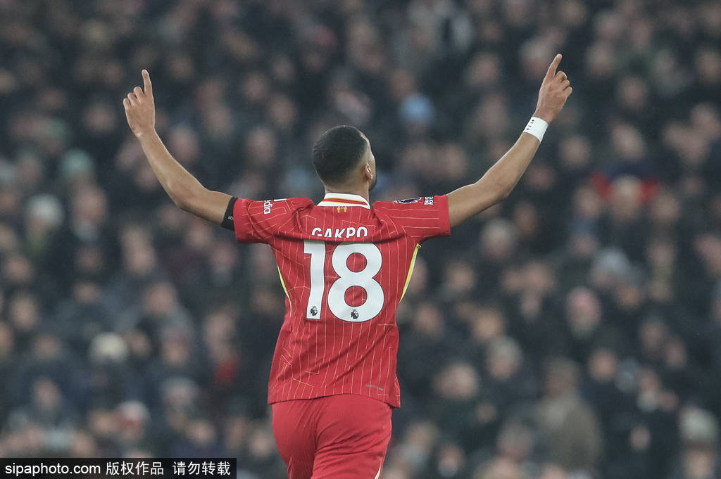 第54分钟,阿玛德因庆祝过格被黄牌警告。第59分钟,利物浦扳平比分,麦卡利斯特直传,加克波禁区左侧晃过防守球员后小角度爆射破门,1-1!加克波连续三轮联赛破门,这也是他本赛季第6个英超进球,各项赛事第12球。