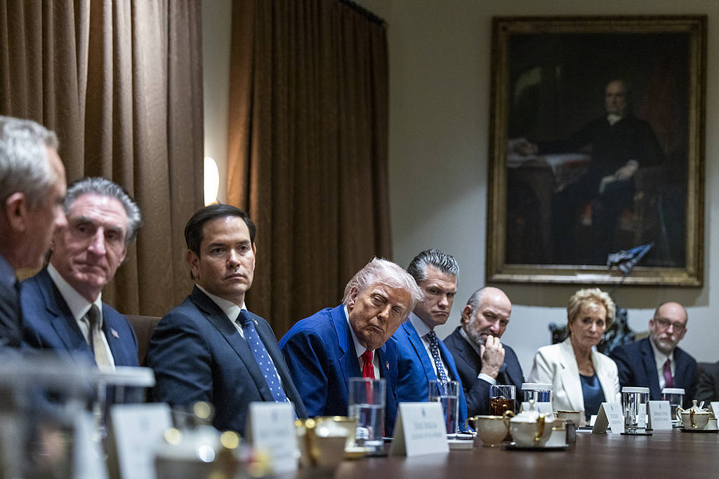 当地时间2025年4月10日,美国华盛顿,特朗普(左四)在白宫内阁会议室主持内阁会议,左三为鲁比奥视觉中国