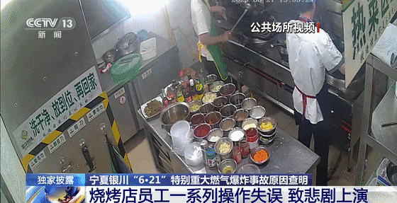 如果这时立即关阀断气,马上开窗通风,及时关闭火源,悲剧仍然可以避免。然而,现场没有人去这么做。慌乱中,大家只是关掉烧烤炉后就走出烧烤区,没有人提示热菜区正在烧菜的员工及时关火。